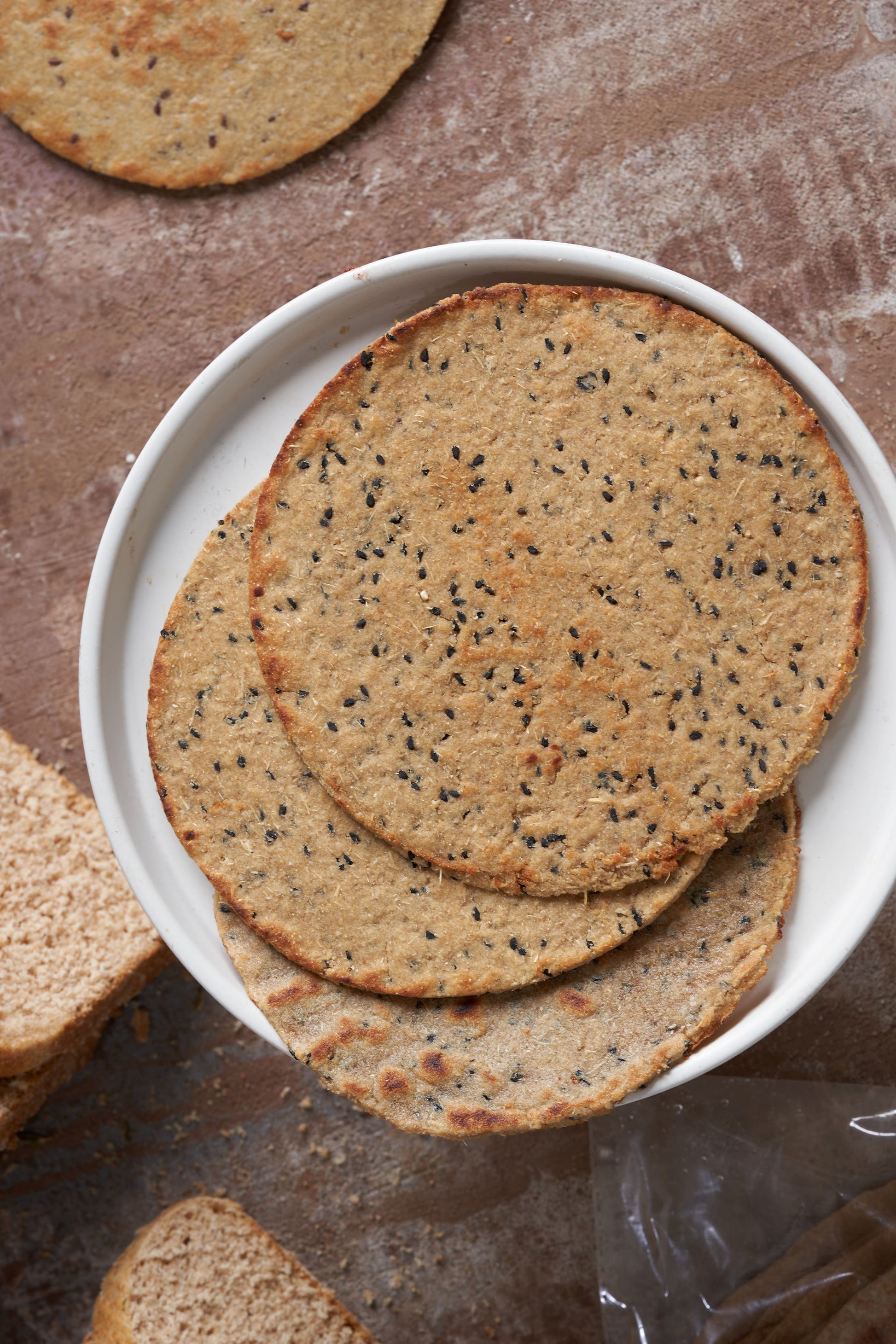 Barely & oatmeal flat bread with yogurt and nigella seeds (5 pieces) خبز صاج الشعير والشوفان بالزبادي وحبة البركة